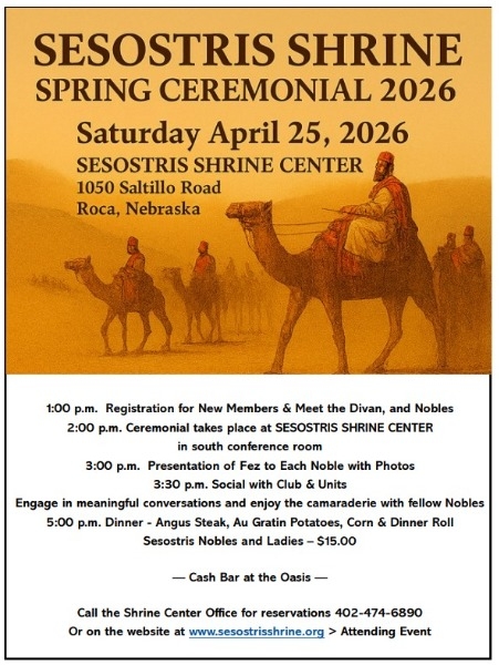 Sesostris Shriners Spring Ceremonal this upcoming Saturday. Please come out and support our new Nobles.